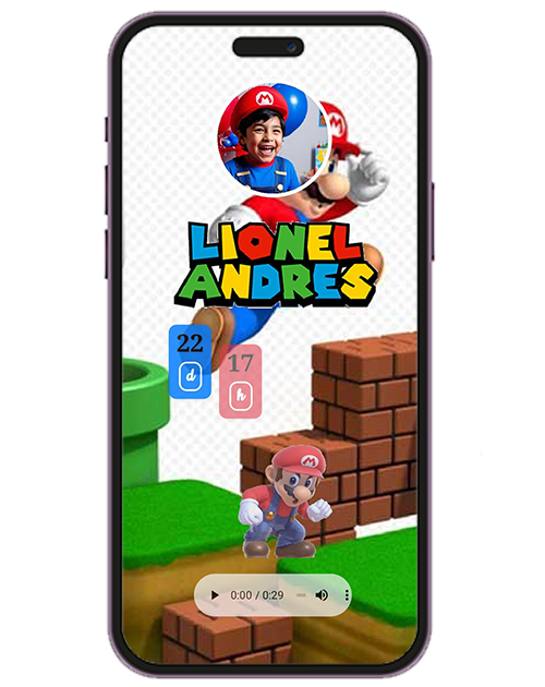 🌟 Sumérgete en el increíble mundo de Mario Bros con nuestra invitación digital web interactiva. Perfecta para cualquier fanático de Mario, esta invitación ofrece una experiencia visualmente atractiva y dinámica, llena de color y emoción. 🌈🎮 Con un diseño inspirado en el icónico videojuego, incluye un ⏳ contador regresivo, una 🖼️ galería de imágenes, un 🗺️ mapa de ubicación, y mucho más. 🎉 Personaliza cada detalle y sorprende a tus invitados con una experiencia única y divertida que capturará su atención desde el primer momento. 🚀